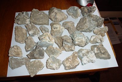 Thanks much for having me over and providing me with such good Gem Mine material. I feel certain that I will find many goodies in the rocks I purchased. I throrughly cleaned and examined each piece. One small rock in the handfuls you selected for me shows a whole face of a 1 cm clean, gemmy benitoite.  I found so many promising pieces in the 4lbs you selected for me that I don't think I could have a reason to complain. Sure, there were a few throwing rocks, but most was quite nice material.