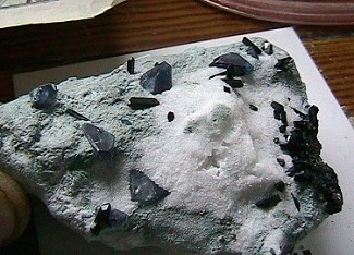 Steve Henegar - Tennessee - I received the benitoite rough I ordered a few days ago.  I wasn't expecting to see crystals already exposed.  Some of the neptunite already visible looks pretty good.  I can't wait to get started etching the natrolite to see if any benitoite crystals emerge.