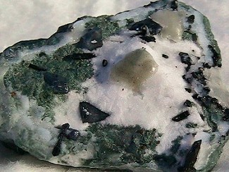 James Corliss - Louisiana - I found this specimen with a 2+ cm doubly terminated crystal of neptunite in the 1 kilo of mine run material you sent to me.