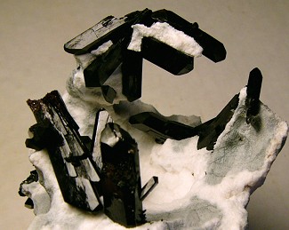 Andy Stevens - Minnesota - I got one great piece in the small lot I ordered. There are at least 20+ fully terminated neptunites emerging from natrolite. The longest ones are 1.5 cm. With a single 1.5 cm doubly terminated crystal. Also a small partial benitoite on the side. Very exciting stuff